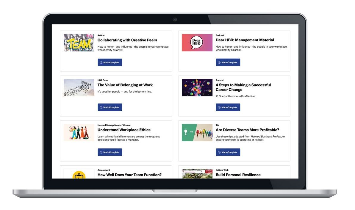 • Access to world-class developmental content – over 29,000 materials from Harvard Business Review, updated daily.